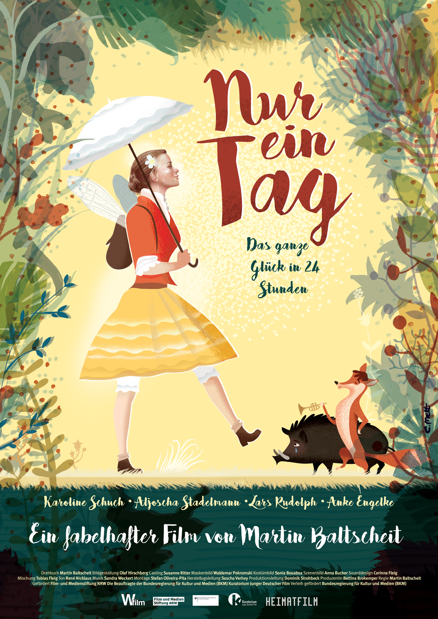 Als die Eintagsfliege den Fuchs und das Wildschwein kennenlernt, fragt sie sich sofort: Warum sind die beiden so unendlich traurig? Schnell findet sie heraus, warum. Der Fuchs hat nur einen Tag zu leben. Kurzerhand nimmt sie sich vor, ihm den allerbesten Tag zu bescheren: „Wer nur einen Tag hat, der braucht das ganze Glück in 24 Stunden!“. Die drei neuen Freunde erleben auf einer Wanderung durch Wald und Wiesen ein ganzes Leben im Schnelldurchlauf: Schule, Heiraten, Kinderkriegen, Altwerden und Sterben. Doch irgendwann verplappert sich der Fuchs. Die Eintagsfliege erfährt den wahren Grund der Traurigkeit: Sie selbst hat nur einen Tag zu leben. Fuchs und Wildschwein brachten es nicht übers Herz, der lebenslustigen, zauberhaften Eintagsfliege die Wahrheit zu erzählen. Die Eintagsfliege muss sich entscheiden. Soll sie mit ihrem Schicksal hadern oder Frieden mit dem Lauf der Dinge schließen? Bei der Entscheidung helfen ihr die neuen Freunde Fuchs und Wildschwein.
